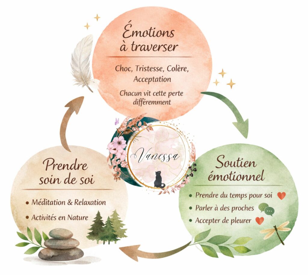 Je m’appelle Vanessa et grâce à une formation approfondie, certifiée Qualiopi, auprès de Marie Cibot, vétérinaire et chercheuse en éco-éthologie, j’ai pu affiner mes compétences pour être à vos côtés dans l’accompagnement du deuil animalier en toute légitimité.